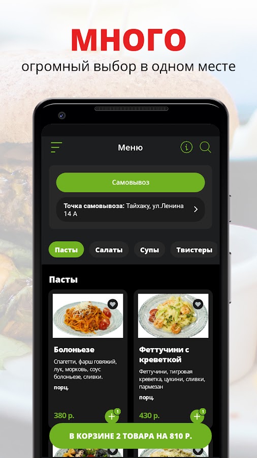Скачивайте наше приложение, оформляйте заказ и наслаждайтесь любимой едой, где бы Вы ни были! Приятного аппетита!