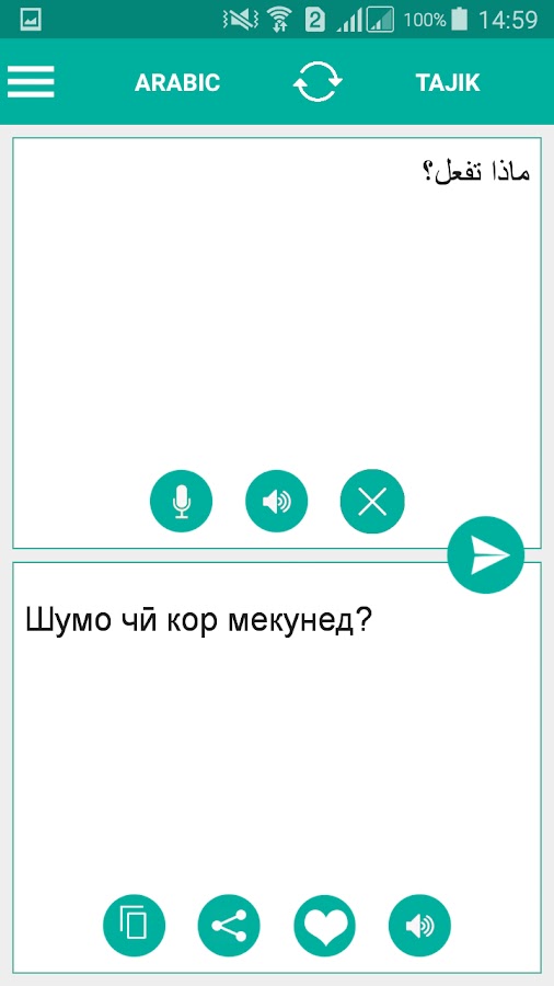 Бонусная функция — выучите и освоите произношение, поскольку таджикский арабский переводчик имеет встроенную функцию звука. Слушайте переведенный текст и общайтесь с друзьями, подругами, парнями, членами семьи или туристами.