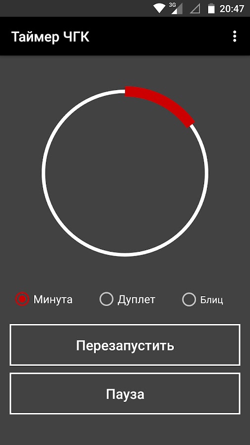 Скачайте приложение Таймер ЧГК (Что? Где? Когда?) для Android бесплатно - последняя версия (1.6) уже доступна для установки на ваш телефон или планшет.