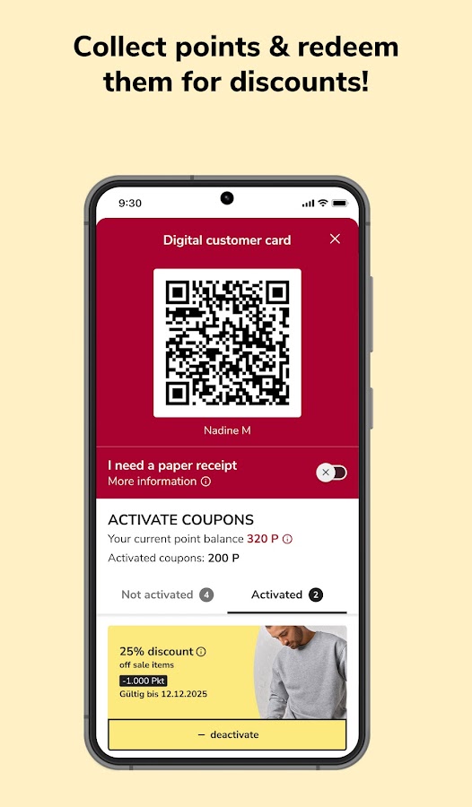 Каждый балл имеет значение! Просто активируйте свой любимый купон в приложении с помощью накопленных баллов и предъявите свою цифровую карту клиента при оплате.