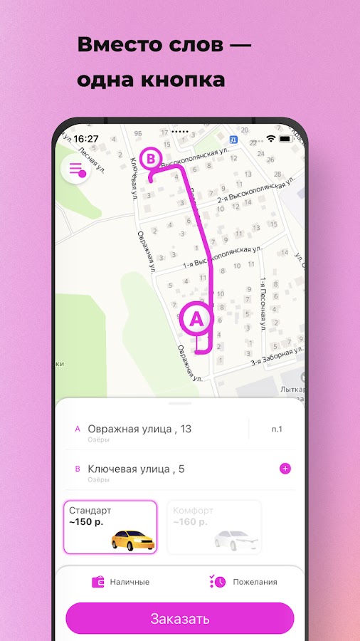 Откройте приложение, укажите адрес и закажите такси, нажав на одну кнопку.