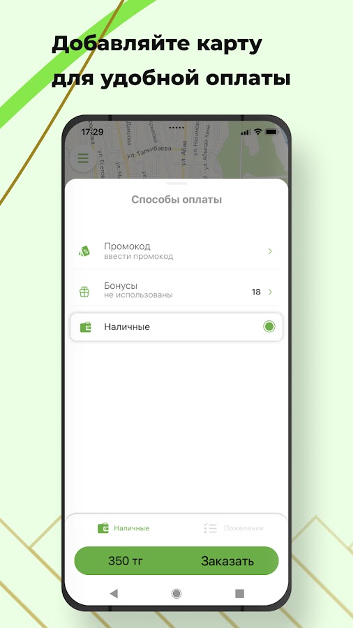 Выберите опцию “Предварительный заказ”. Поиск автомобиля начнется незадолго до заказа поездки, и автомобиль приедет к назначенному времени. Также вы будете заранее знать стоимость поездки.