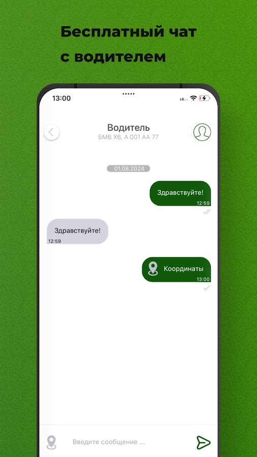 Заказали такси, но не видите водителя? Спросите в чате приложения, где он находится, или отправьте ваши координаты с помощью одной кнопки. По окончании поездки история чата будет удалена.