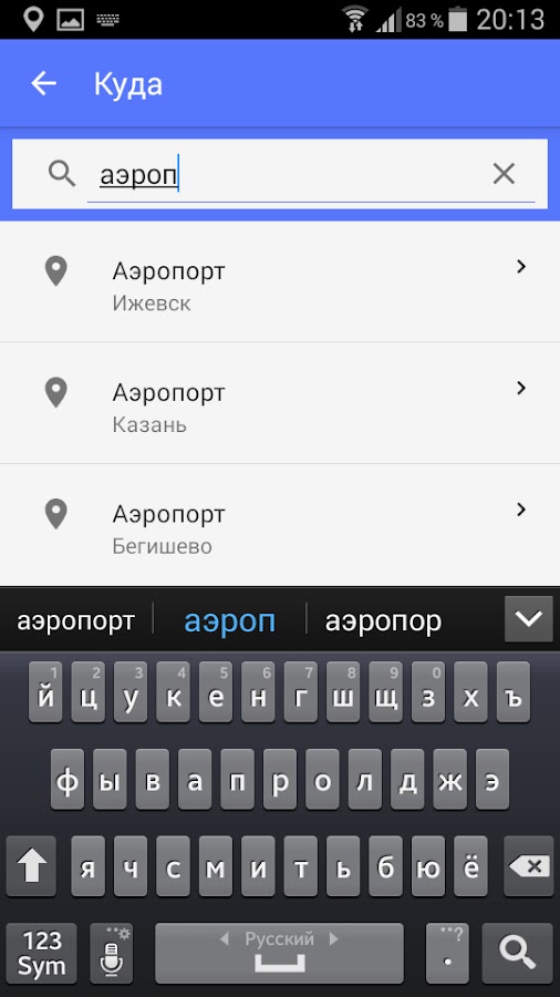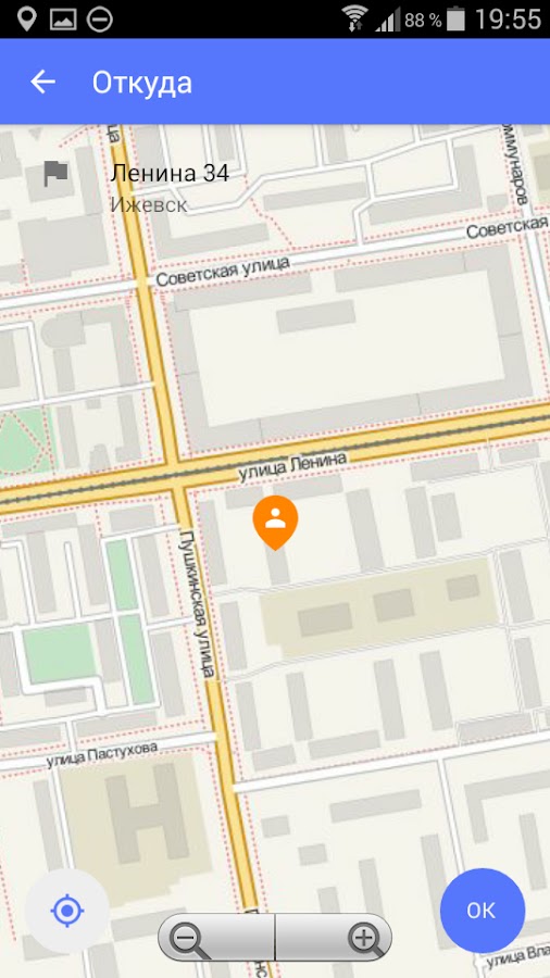 * Выбирать адрес на карте, вводить его вручную или выбирать из списка ранее использованных адресов