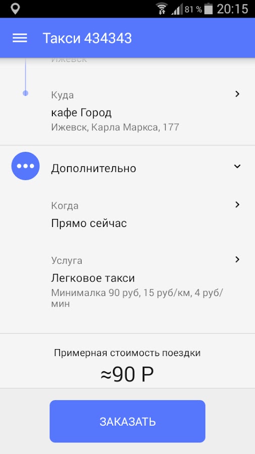 * Заказывать такси с одной кнопки без разговоров с диспетчером