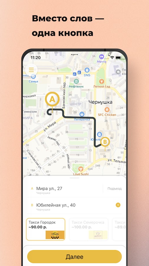 Откройте приложение, укажите адрес и закажите такси, нажав на одну кнопку.