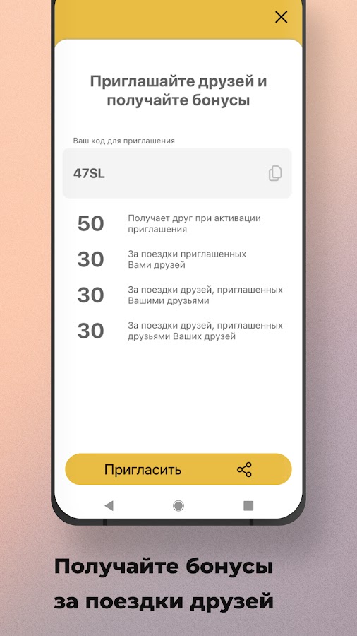 Приглашайте друзей по реферальному коду и получайте бонусы за их поездки. А также, за поездки их друзей. Используйте бонусы для оплаты такси Чернушка.