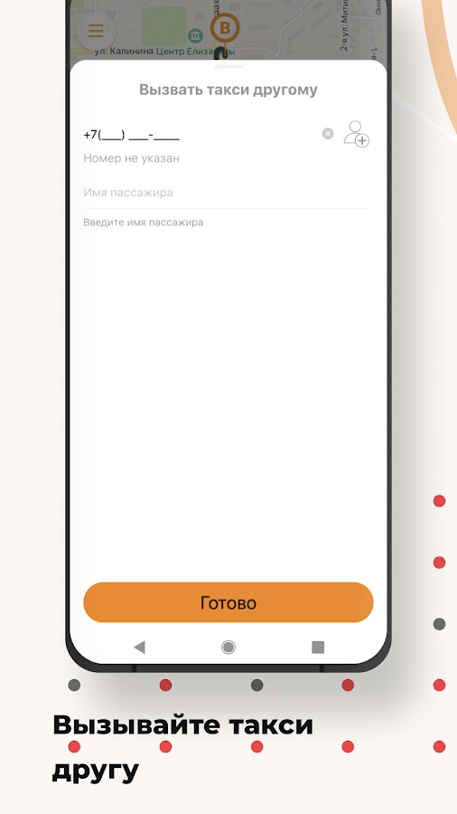 Используйте опцию “Вызвать такси другому” в разделе “Пожелания” и укажите его номер телефона. Когда такси подъедет, на указанный номер придет СМС, а вам — сообщение в приложении.