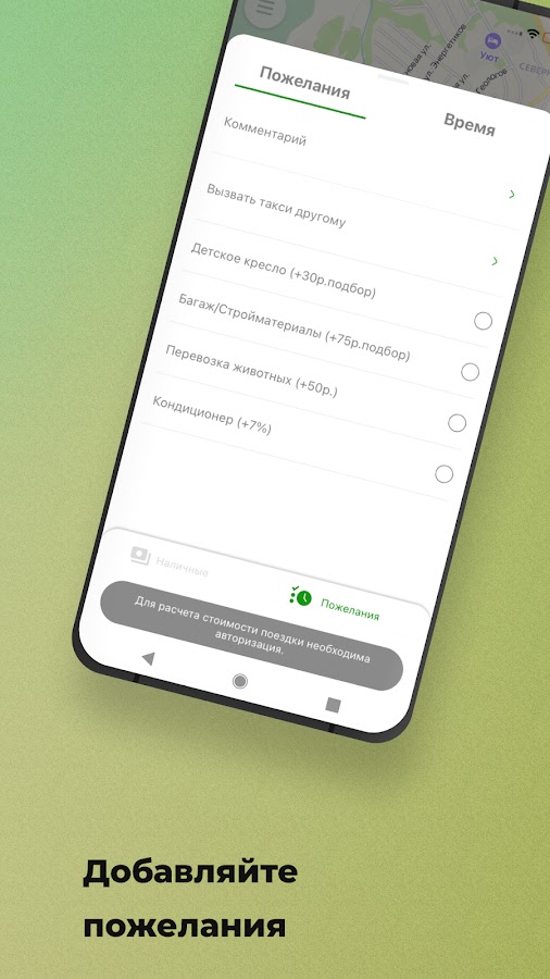Добавляйте к заказу пожелания, напишите комментарий водителю, ускоряйте поиск автомобиля.