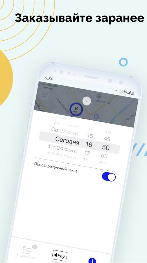 Больше не нужно тратить время на общение с диспетчером, заказывайте такси через ваш смартфон где угодно: на совещании, шумной вечеринке, в кинотеатре, в ресторане или баре — вам не придется ждать: такси будет подано тогда, когда вам это необходимо.