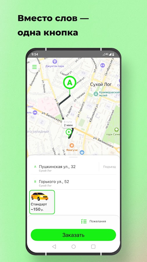 Откройте приложение, укажите адрес и закажите такси, нажав на одну кнопку.