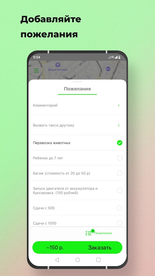 Добавляйте к заказу пожелания или напишите комментарий водителю.