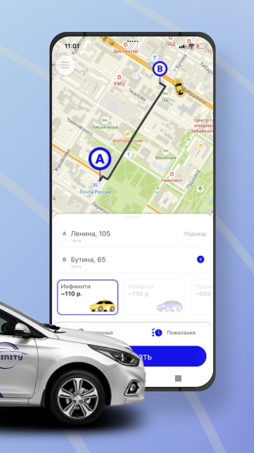 Заказывайте такси с помощью приложения Инфинити в городах Чита, Краснокаменск, Нерчинск, Шилка, Красный Чикой. Пользуйтесь удобным сервисом, экономьте на поездках, оценивайте их, чтобы сделать сервис «Инфинити» еще лучше.