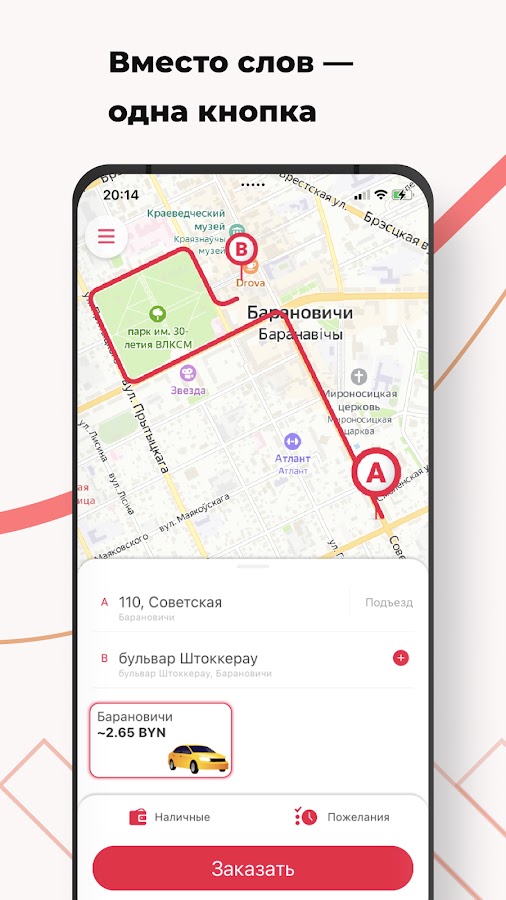 Заказывайте такси Кали Ласка в городах Барановичи, Берёза, Браслав, Вилейка, Глубокое, Жабинка, Лида, Лунинец, Несвиж, Островец, Ошмяны, Пинск, Поставы, Пружаны, Слоним, Слуцк, Сморгонь, Столин, Шарковщина через приложение. Это в 3 раза быстрее, чем по телефону! Между желанием доехать до нужного места и поиском автомобиля — пара секунд.
