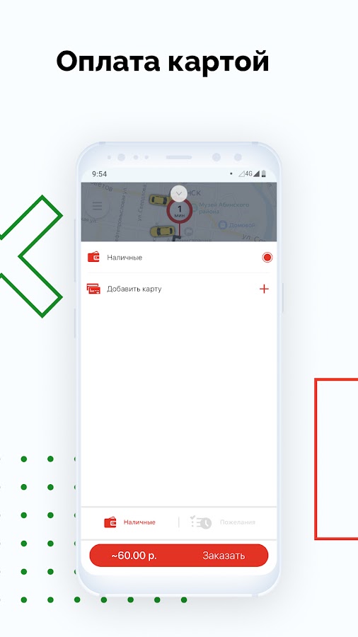 Вы можете оплатить такси не только наличными, но и банковской картой, зарегистрировав её в приложении.