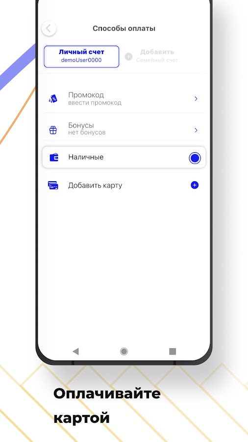 Быстрая и безопасная оплата. Чтобы добавить карту, внесите её данные в приложение. QR-код для оплаты любым банковским приложением будет доступен в конце поездки у водителя.