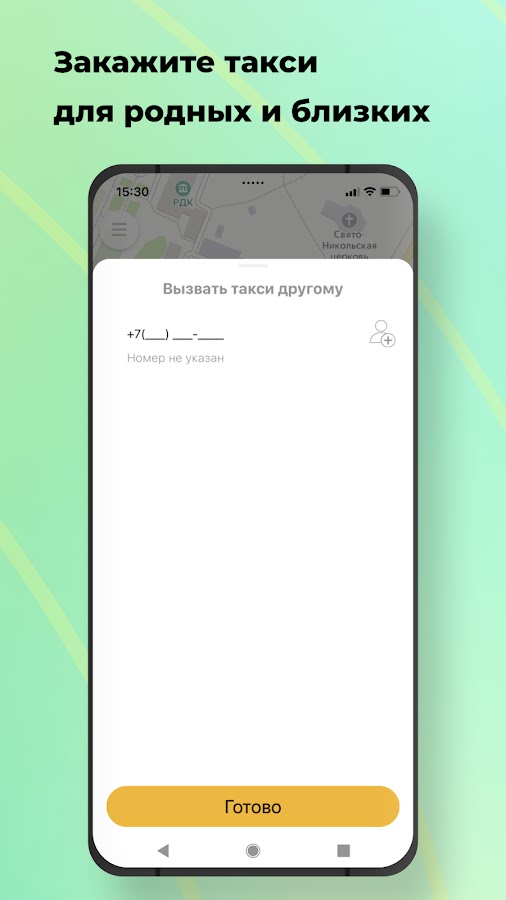 Используйте опцию “Вызвать такси другому” в разделе “Пожелания” и укажите его номер телефона. Когда такси подъедет, на указанный номер придет СМС, а вам — сообщение в приложении.