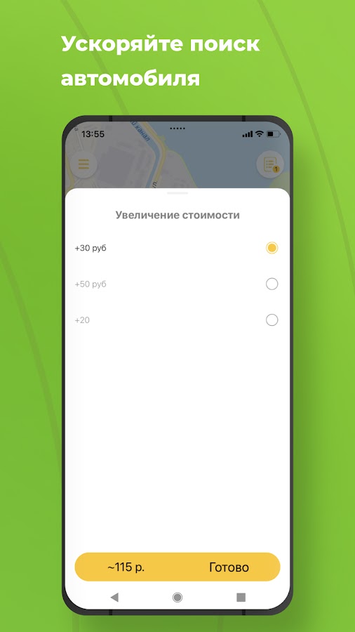 🚕 Сокращайте время ожидания, увеличив стоимость заказа. Так водитель быстрее заберет ваш заказ. Пригодится, если нет времени ждать даже одну лишнюю минуту.