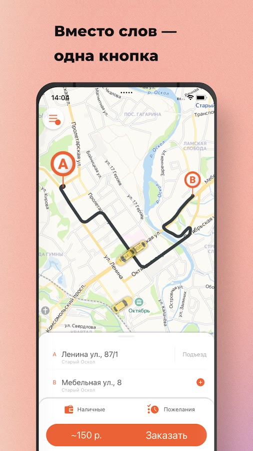 Закажите Малыш такси в городе Старый Оскол через приложение. Это в 3 раза быстрее, чем по телефону! Между желанием доехать до нужного места и поиском автомобиля — пара секунд.