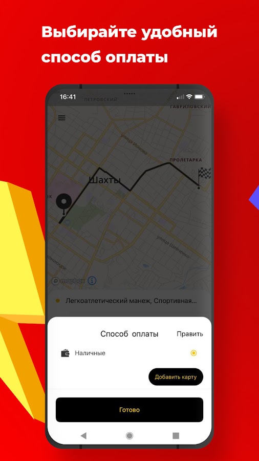 Выбирайте, как вам будет удобно оплатить такси в приложении: наличными, картой или переводом водителю.
