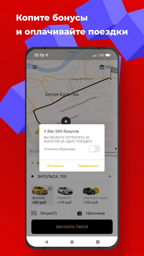 Возможна частичная оплата накопленными в приложении бонусами — максимум 30 рублей за одну поездку.