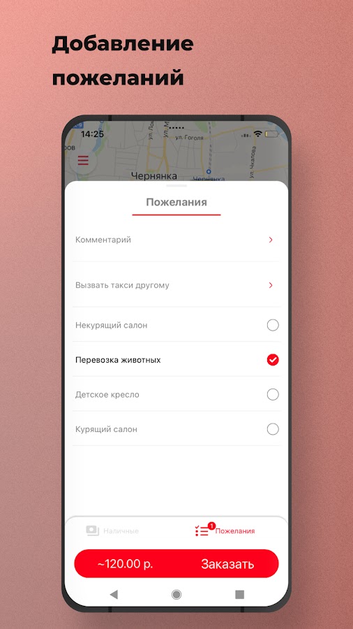 Добавьте к заказу дополнительные пожелания. Например, если вы не переносите запах табака — укажите «Некурящий салон», и к вам приедет некурящий водитель.