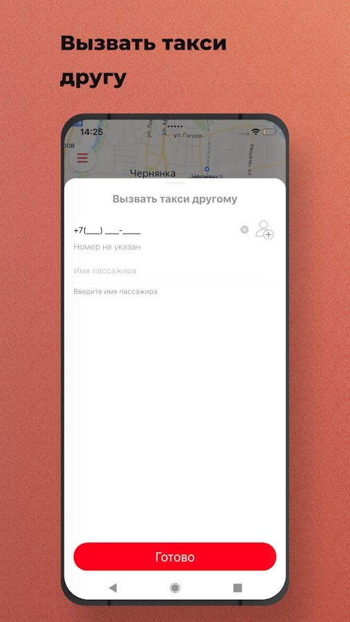 Используйте опцию «Вызвать такси другому» в разделе «Пожелания» и укажите его номер телефона. Когда такси подъедет, на указанный номер придет СМС, а вам — сообщение в приложении. Также вы можете поделиться информацией о своем заказе, просто скинув ссылку. Близкие люди будут точно знать где вы и с кем.