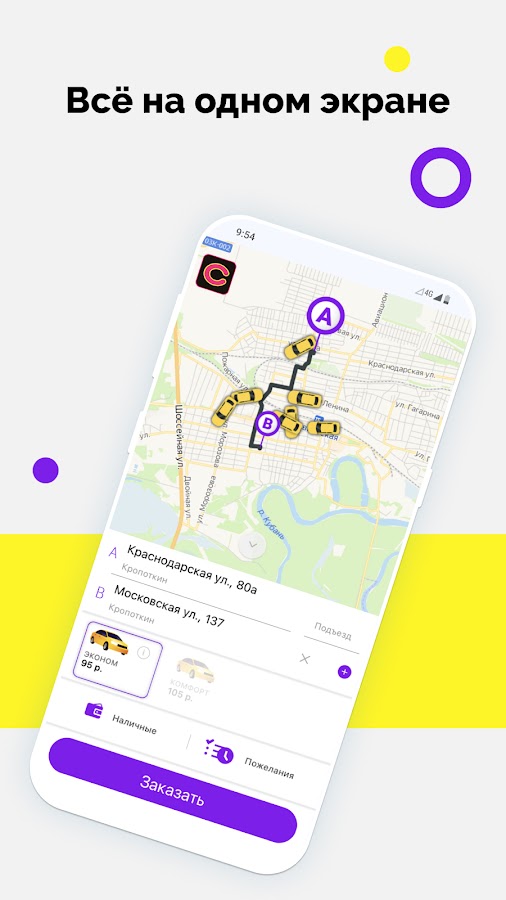 Приложение Такси Сity — современный способ заказа такси в городе Кропоткин. Всего пару тапов по экрану и вы вызвали машину в нужную точку.