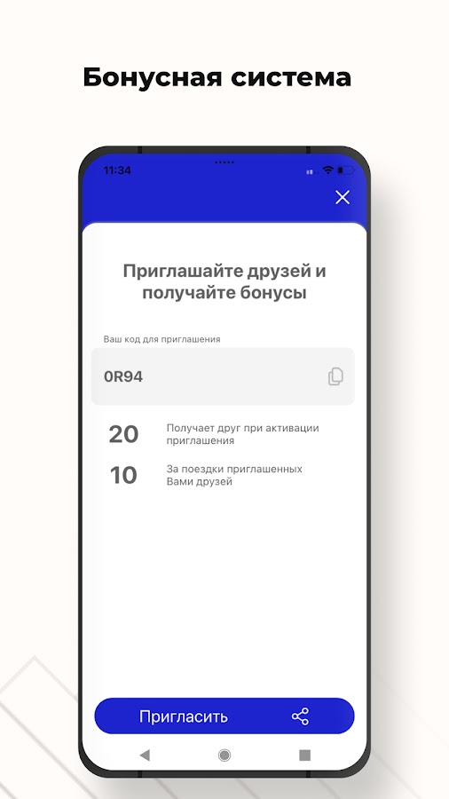 Приглашайте друзей в приложение и зарабатывайте бонусы с помощью реферальной системы. Оплачивайте ими и экономьте на поездках.