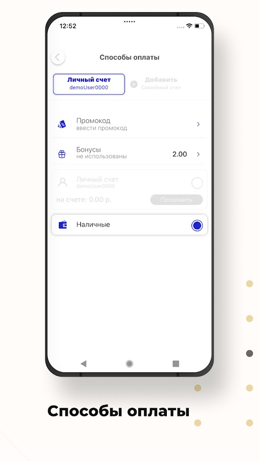 Оплачивайте поездки наличными, картой или накопленными бонусами. Также вы можете оплатить поездку через любое банковское приложение по QR-коду.