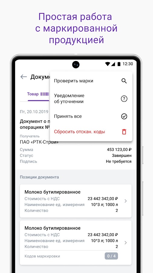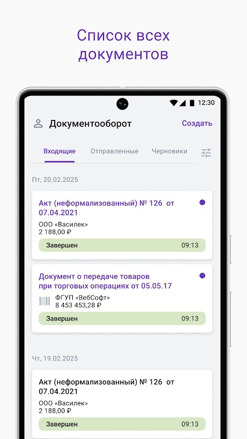• Получать уведомления о новых входящих документах, прохождении стадий документооборота, уточнениях и аннулированиях на мобильное устройство.