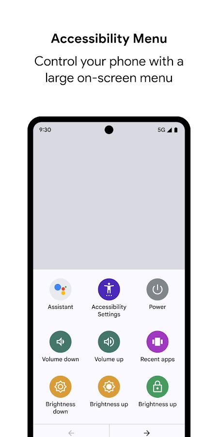 • Меню специальных возможностей. Используйте большое экранное меню, чтобы блокировать телефон, изменять яркость экрана и громкость, делать скриншоты и не только.