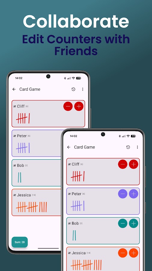 Обменивайтесь счетчиками и проводите совместные подсчеты с несколькими людьми.