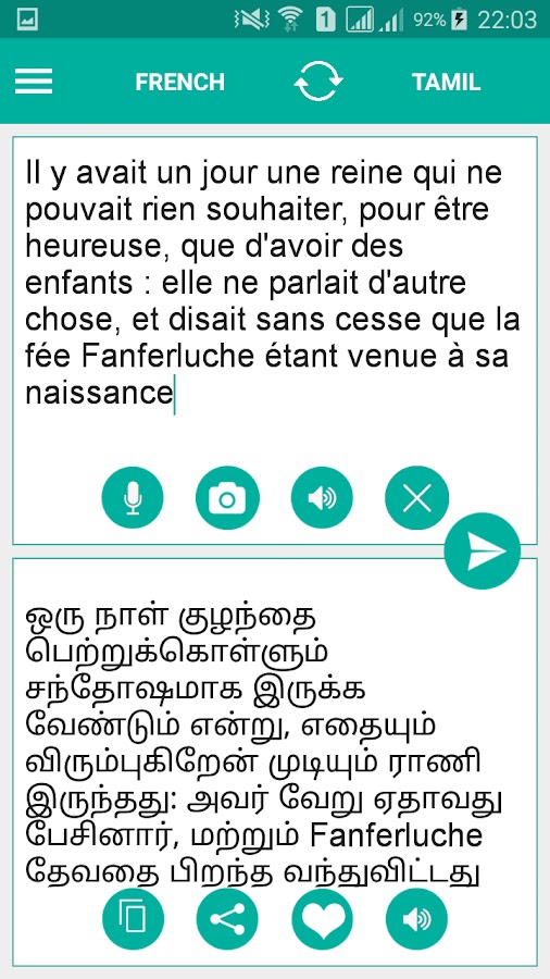 Бонусная функция — Изучите и освойте произношение, поскольку тамильский французский переводчик имеет встроенную аудиофункцию. Слушайте переведенный текст и удобно общайтесь с друзьями, подругами, парнями, членами семьи или туристами.