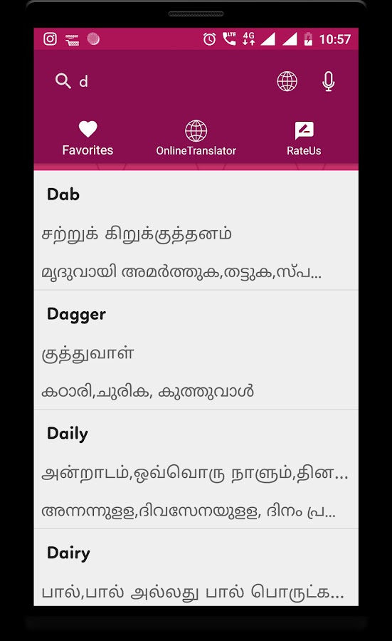 Мы надеемся, что вам понравился словарь и переводчик с английского на тамильский малаялам. Если вам нравится приложение-переводчик на тамильский язык, поделитесь им. Пожалуйста, просмотрите его для получения лучших обновлений. Спасибо.