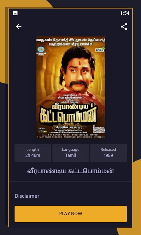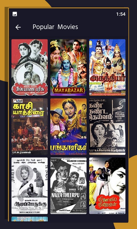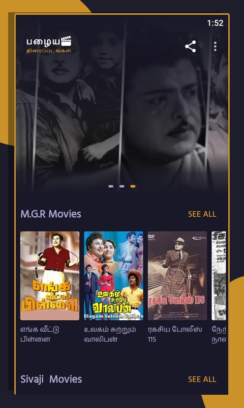 Наслаждайтесь признанными критиками классическими фильмами, такими как: Энга Ветту Пиллаи, Ратха Каннир, Вирапандия Каттабомман и другие.