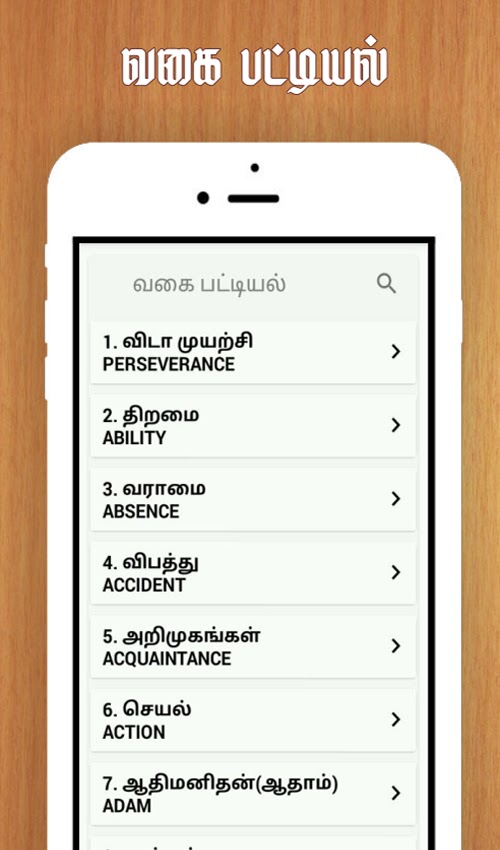 Обширная библиотека тамильских пословиц: погрузитесь в обширную коллекцию тамильских пословиц и цитат, каждая из которых имеет свою историю и урок, который можно передать. Наше приложение охватывает широкий спектр аспектов жизни: от царств тамильской народной мудрости до глубин тамильской пресловутой мудрости.