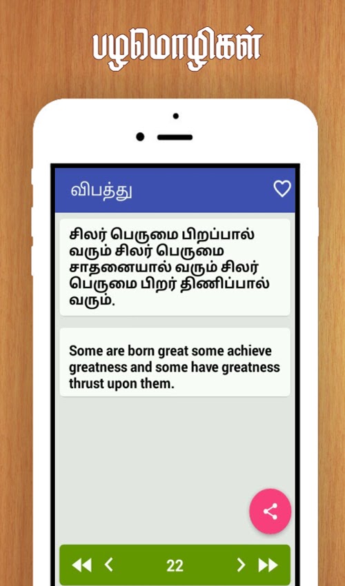 Скачайте приложение Tamil Proverbs தமிழ் பழமொழிகள் для Android бесплатно - последняя версия (3.2) уже доступна для установки на ваш телефон или планшет.