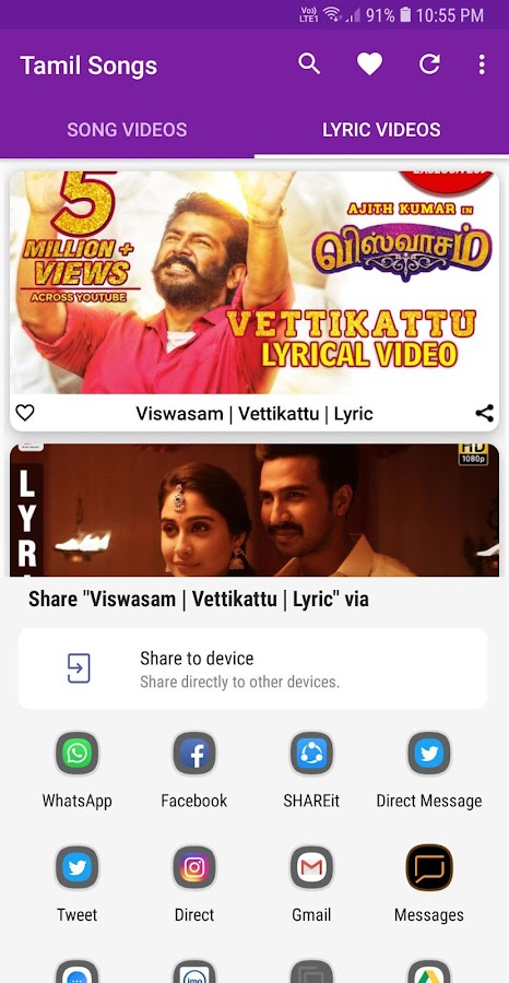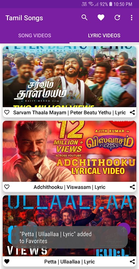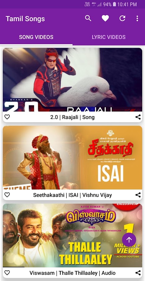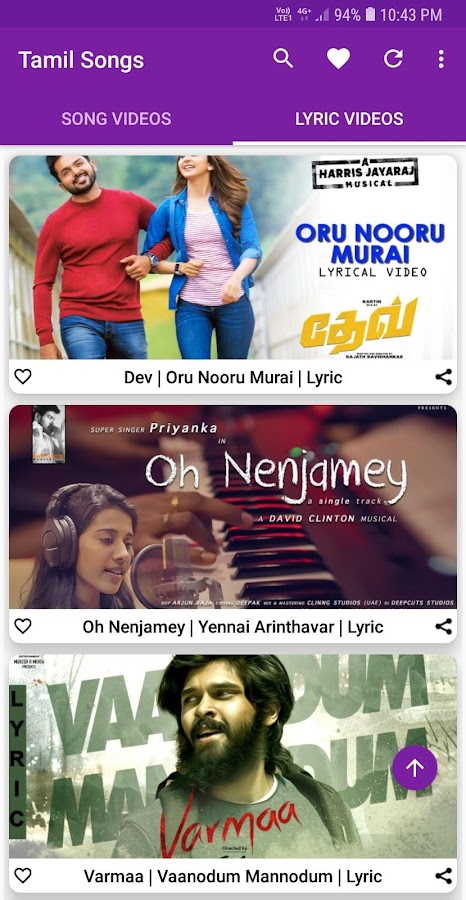 Лучшее приложение для просмотра видео песни Tamil, лирические видео, музыкальные клипы и альбомы.