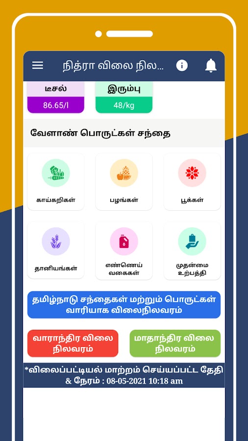 🍊 Митчелл и நிலவரங்களில் காய்கறிகள ், பூக்கள், பழங்கள், தானியங்கள், எண்ணெய் வகைகள், முதன்மை உற்பத்தி பொருட்களின் விலையை ொள்ளலாம்.