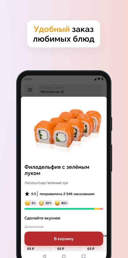 С помощью нашего приложения вы можете заказать суши в городе Юрга, пицца в Юрге, воки, салаты, горячее, десерты и многие другие блюда.