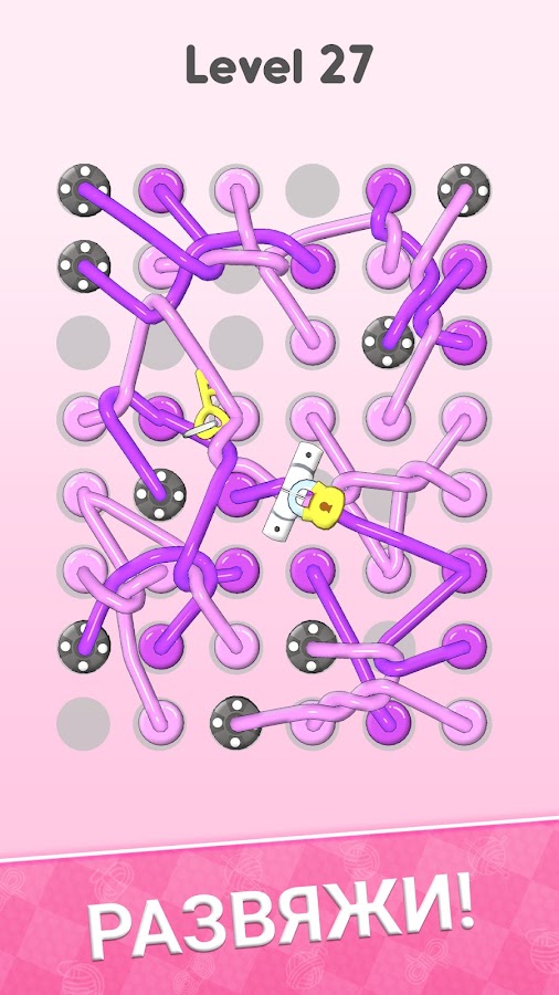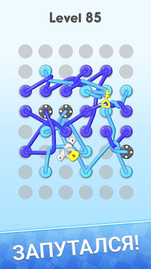 — Нажмите на веревку, чтобы переместить ее, и поместите ее в нужные места, чтобы разблокировать все узлы.
