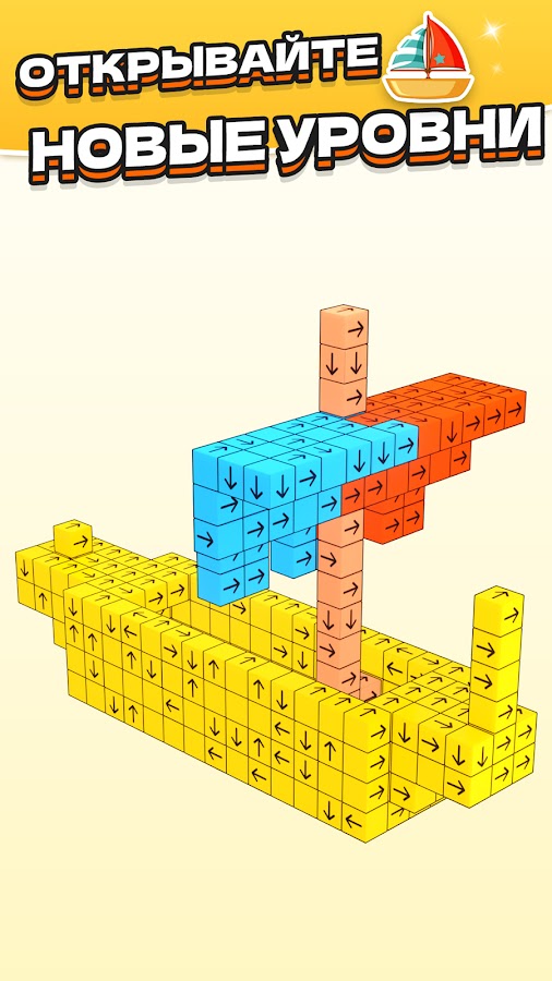 ⚈ Отбивай блоки в соответствии со стрелками. Кубики можно убирать только в направлении стрелки.