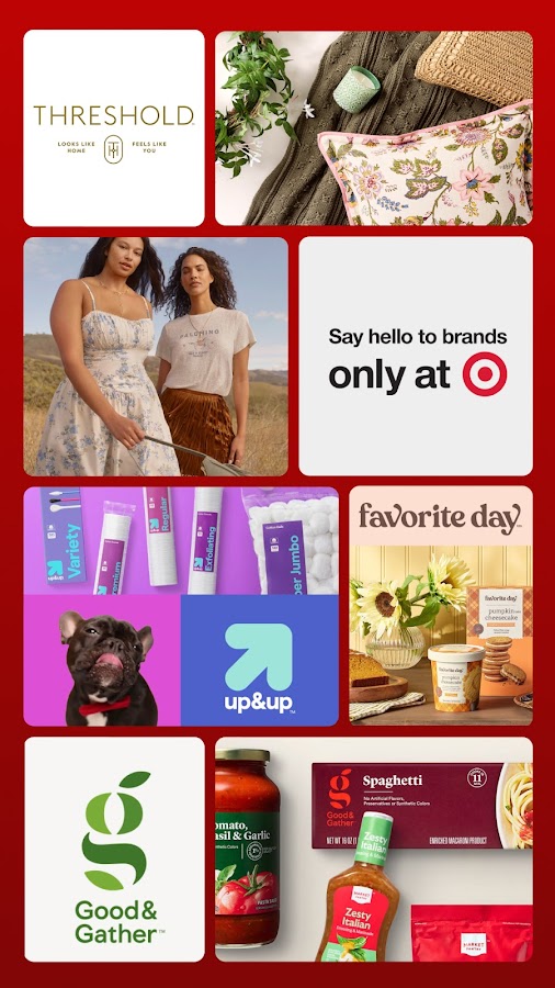 Покупайте товары собственных брендов Target: вы найдете продукты питания, электронику и все необходимые товары повседневного спроса от собственных брендов Target, таких как Good & Gather, up&up и Heyday.