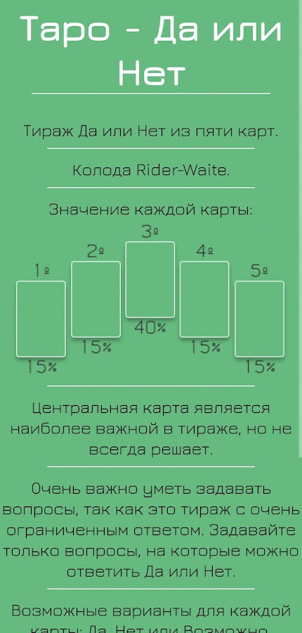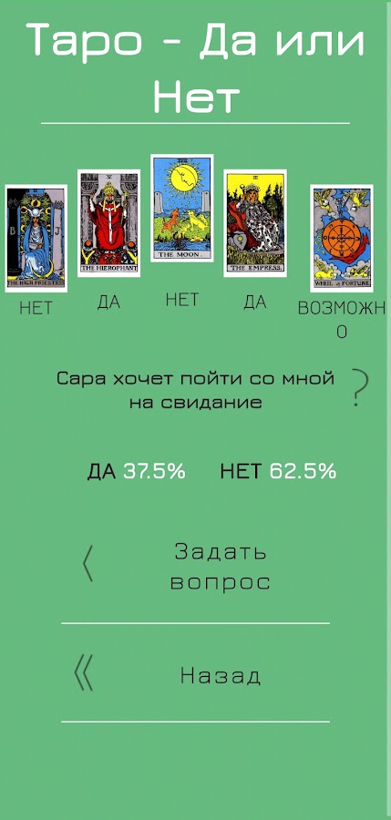 Скачайте приложение Таро Да или Нет для Android бесплатно - последняя версия (2.9) уже доступна для установки на ваш телефон или планшет.