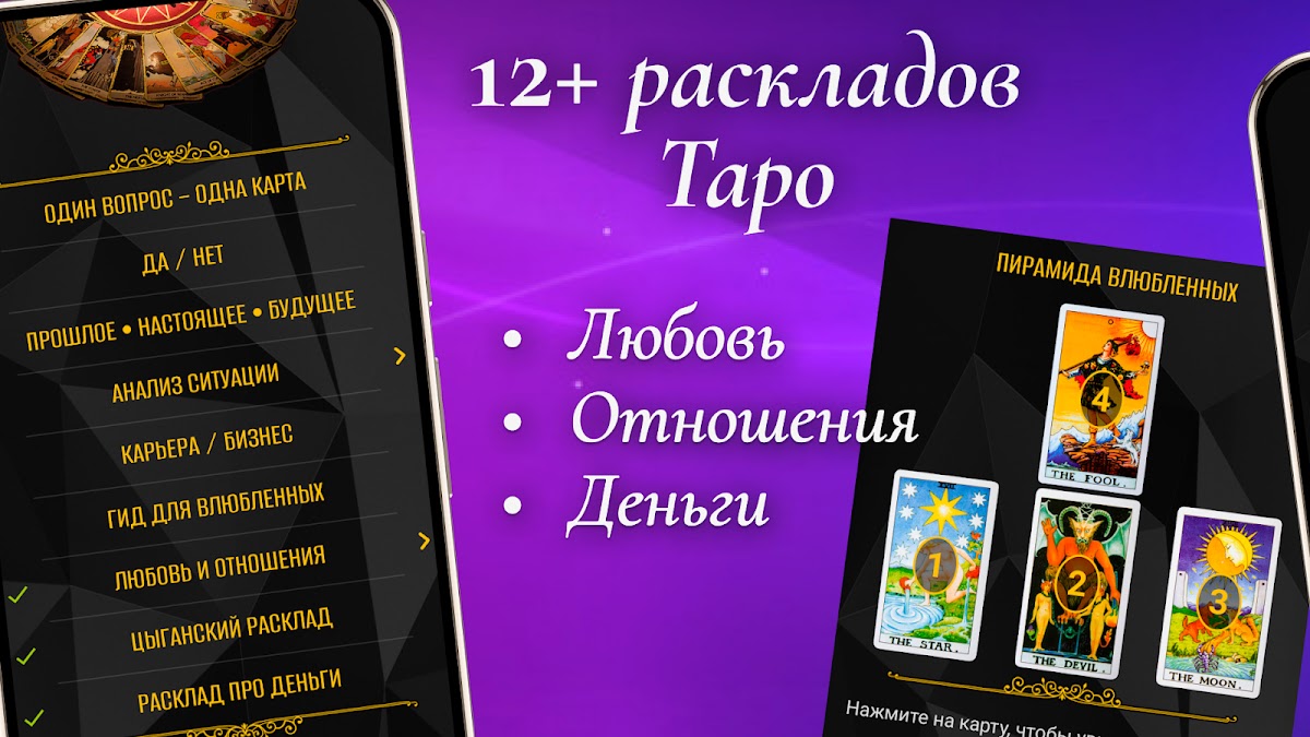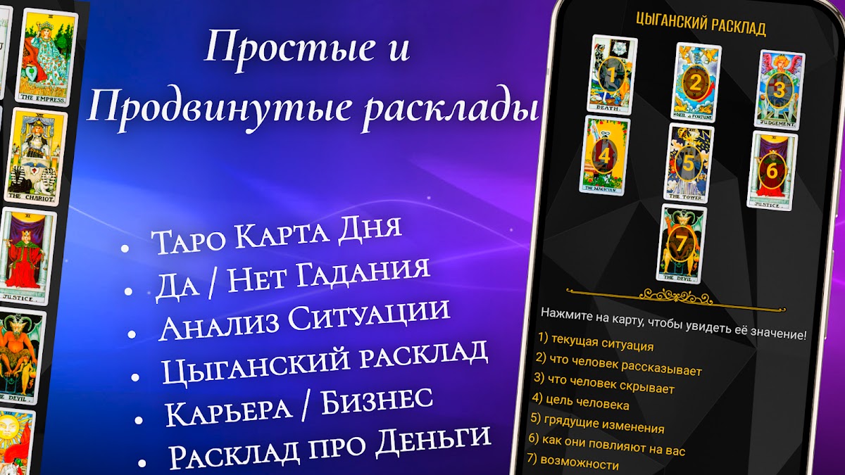 Установите бесплатно и гадайте на картах Таро онлайн – на отношения, на будущее, на человека, на любовь – делайте расклады, чтобы узнать предсказания будущего, понять ситуацию, или просто спросить вопрос у карты дня – Да или Нет.