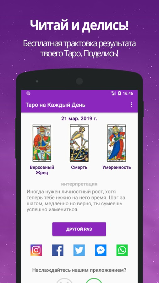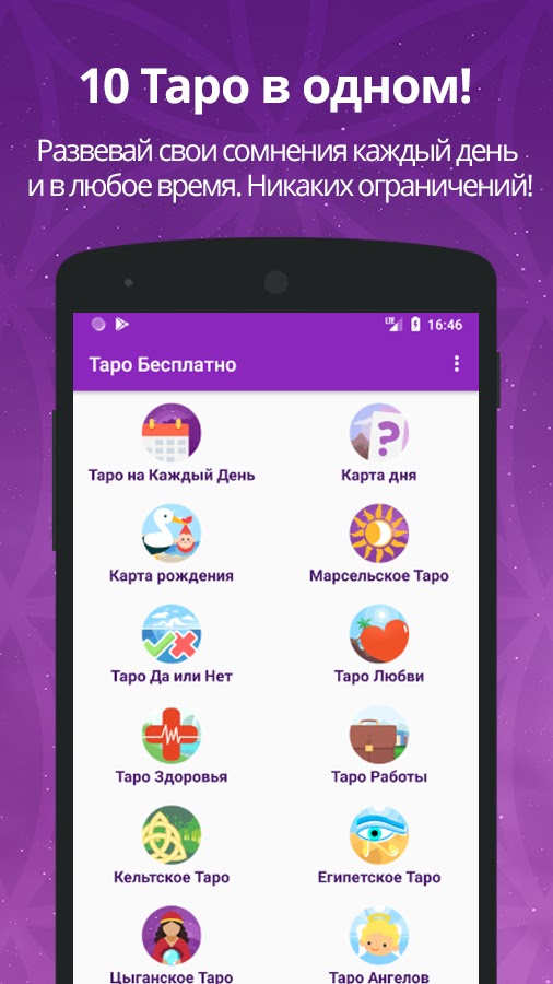 Скачайте приложение Таро — гадание онлайн для Android бесплатно - последняя версия (2.1.8) уже доступна для установки на ваш телефон или планшет.