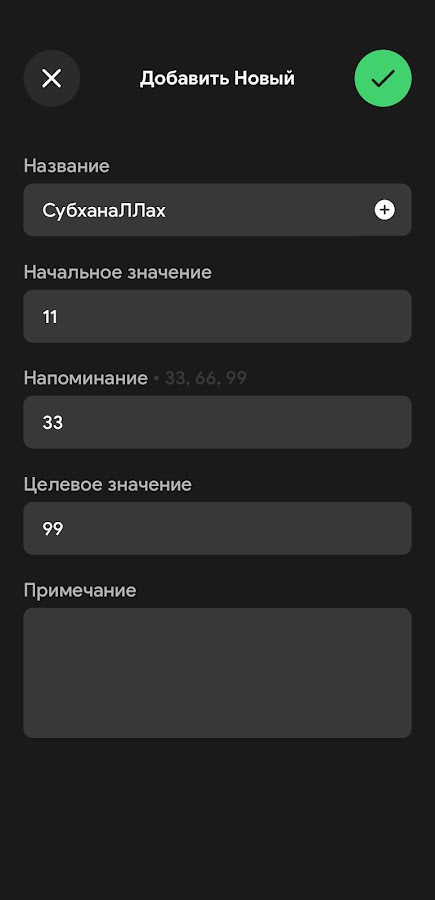 • Установите целевое значение и напоминание значение для счетчика тасбиха.