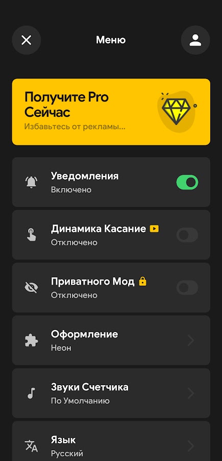 • Вибро- и звуковое оповещение для кнопки счетчика.