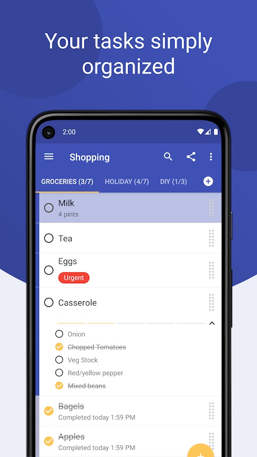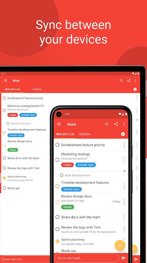 ✔ Простой ввод задач – быстрое добавление задач с помощью ярлыков, постоянного уведомления или обмена ими из других приложений. Делаем ввод задач простым и эффективным.